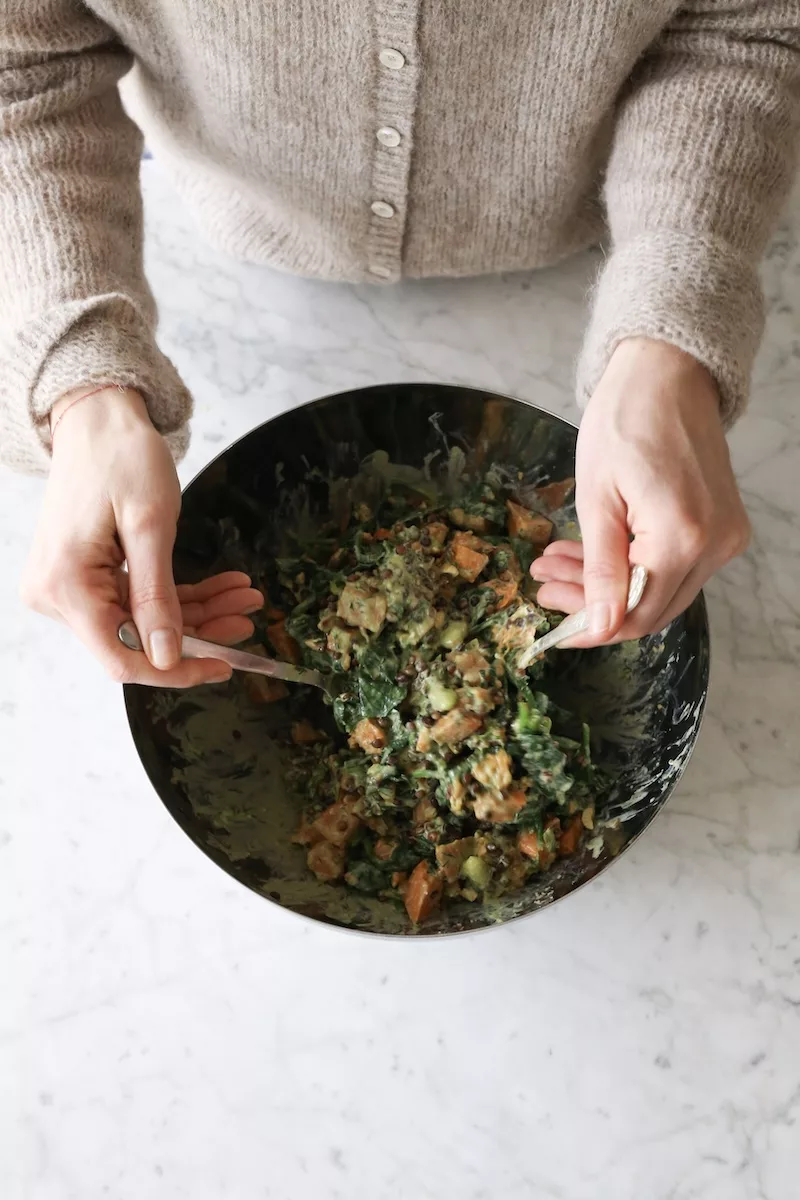 KTO CHĘTNY NA LUNCH ZE MNĄ? SAŁATKA Z BATATÓW, SOCZEWICY I SZPINAKU Z PESTO BAZYLIOWO – FETOWYM
