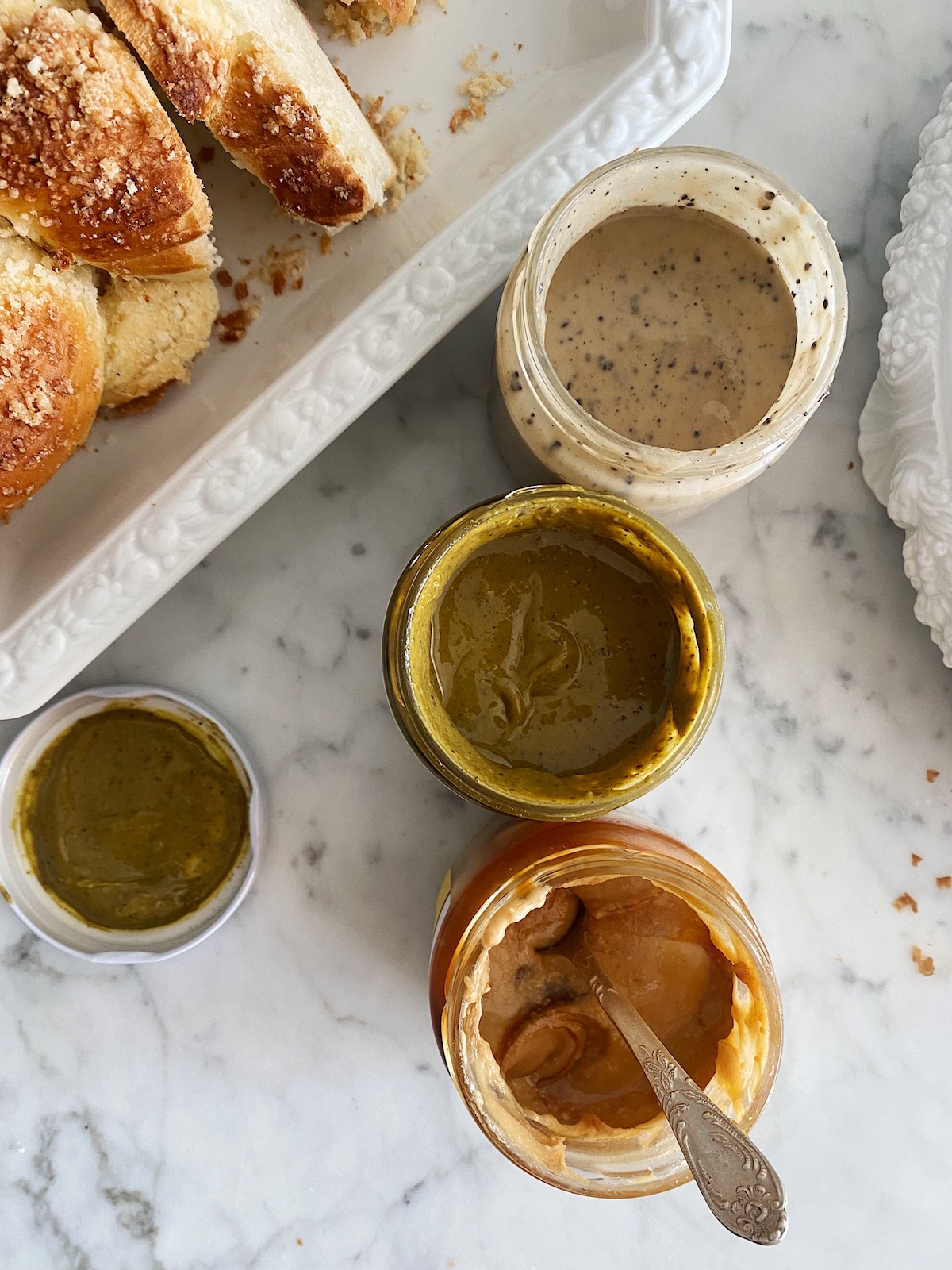Rzemieślnicze kremy orzechowe: pistacja z białą czekoladą, migdał ze słonym karmelem, orzechy nerkowca z espresso.