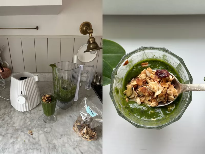 Szpinak, banany, seler, kiwi i nasiona chia. A z granolą całkiem dobry duet. Chętni?