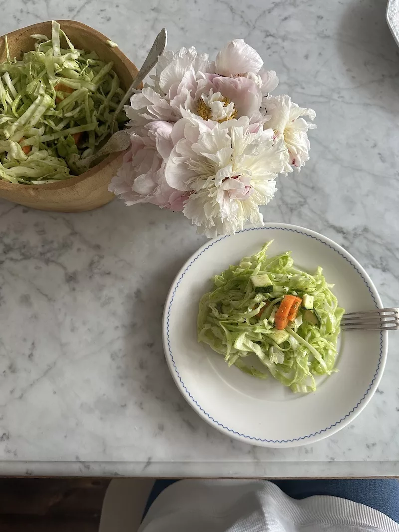 Młoda kapusta, oliwa lubczykowa, cukinia i marchewka. Ostatnio ulubiona surówka.