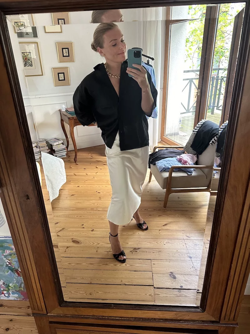 Bardzo relakusjacy artykul. Prosze o namiary na spodnice satynowa oraz okulary (na zdjeciu w bialej sukience z czarna orlbramowka). Pozdrawiam