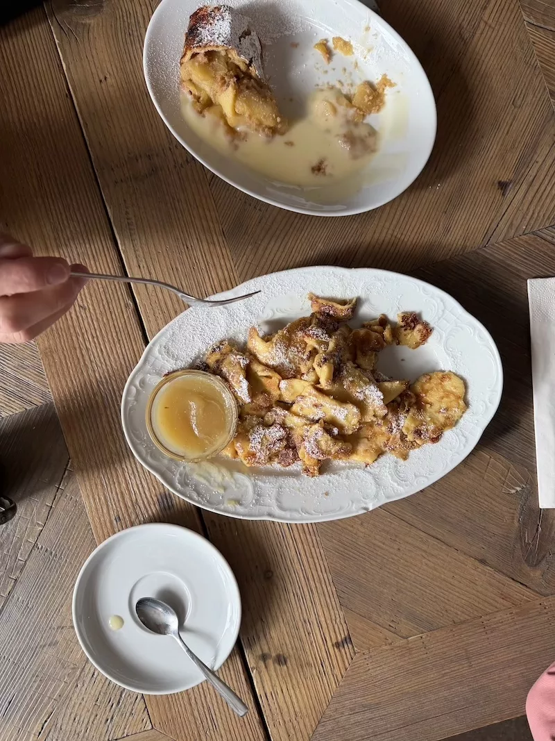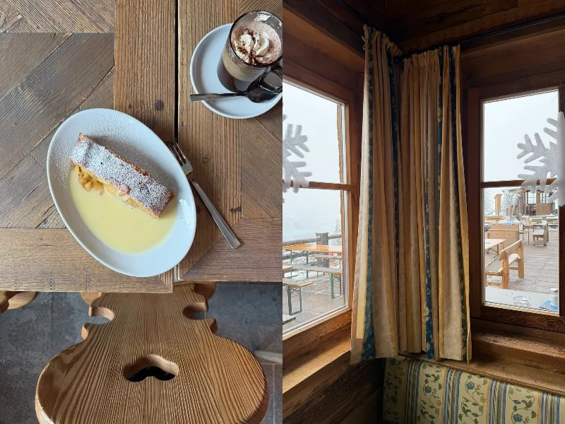 Pisałam w książce o strudlu jabłkowym i o tym, że to deser kultowy. Ale kiedy ktoś zrobi go specjalnie dla Ciebie, poda na ciepło, a za oknem rozciąga się widok na ośnieżone szczyty – człowiek czuje się jak w innym świecie.