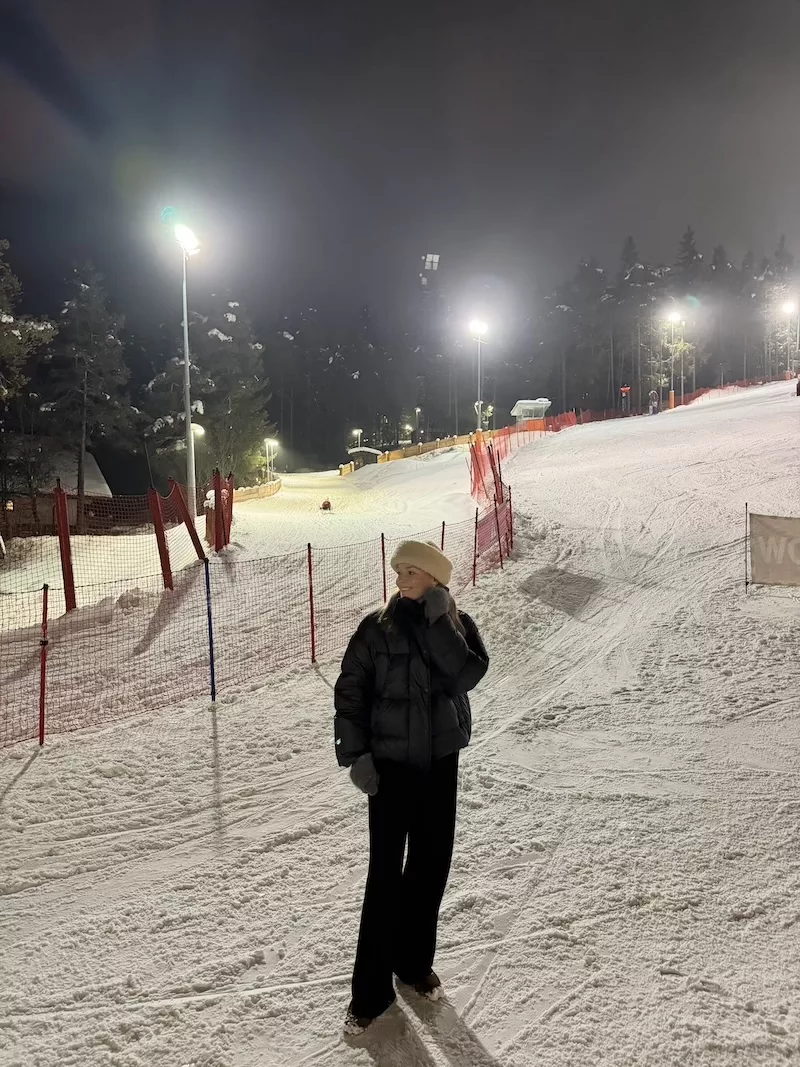 Nocne trasy narciarskie i tory saneczkowe. Choć narty to jedyny sport, w którym uwielbiam prędkość, na sanki nie dam się namówić – ale z przyjemnością towarzyszyłam najmłodszej części naszej ekipy.