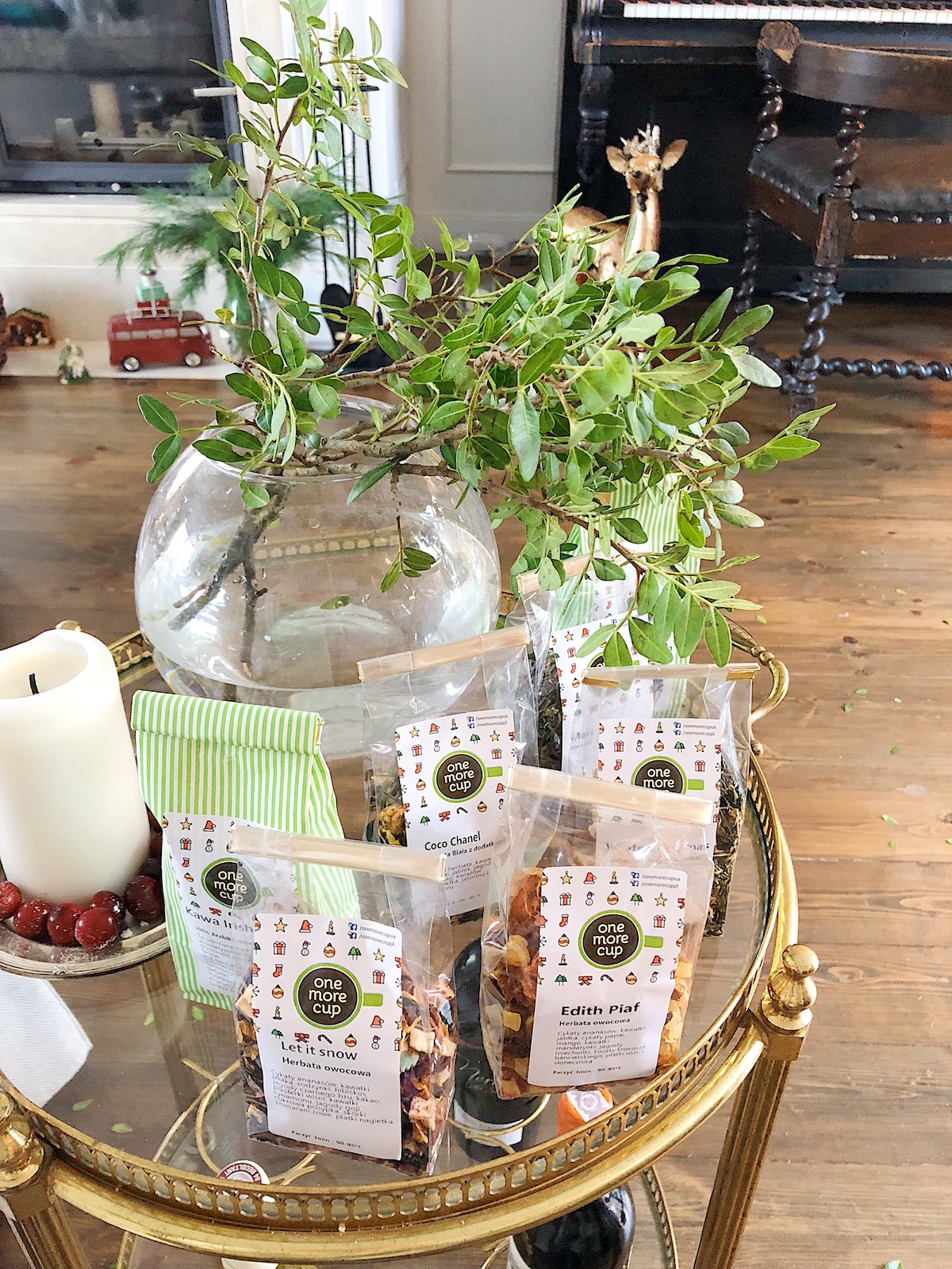 Czym byłby grudzień bez wypitych hektolitrów aromatycznej herbaty? Naszym faworytem okazałą się czarna herbata od onemorecup.pl (z kawałki jabłka, cynamonu, kawałkami wiśni, goździkami, cukrowymi płatki śniegu i płatkami róży).