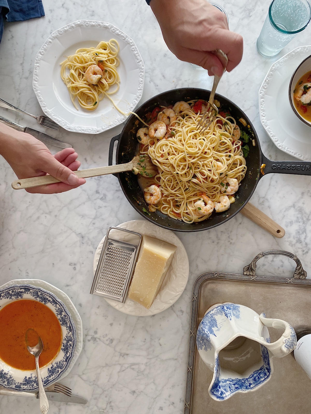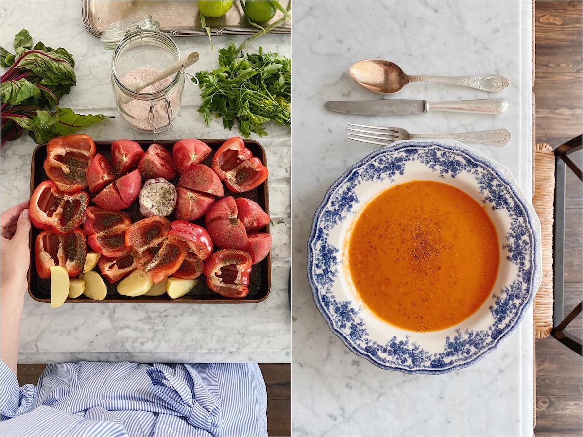 Zupa pomidorowo-paprykowa na stałe zadomowiła się również w naszym letnim menu. Jednak zarówno pomidory, jak i paprykę – my obieramy ze skórki, w miejsce wody dodajemy wzmacniający smak warzywny bulion. Przypomina nieco niezawodne w upały gazpacho.