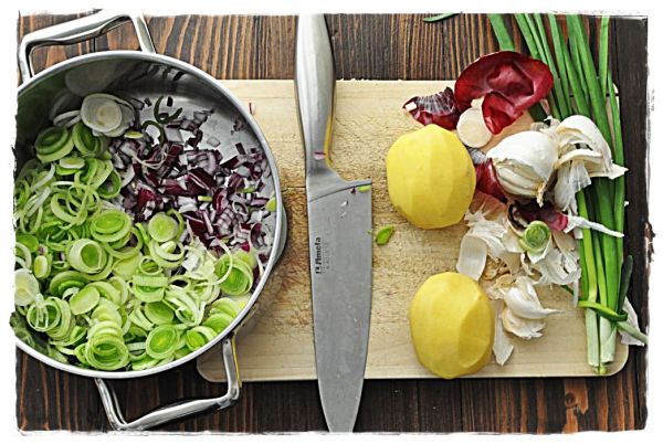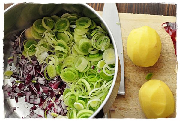 Zupkę zrobiłam trochę po swojemu. Zamiast tylko czerwonej cebuli, dałam pół na pół – białą i czerwoną.