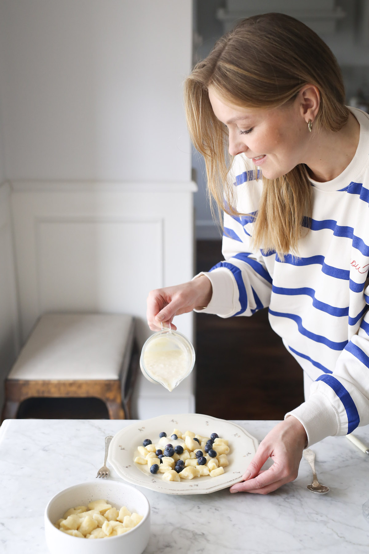 Czasem tak nie wiele potrzeba, żeby przywołać błogie wspomnienia z niewinnych czasów dzieciństwa. Mój dzisiejszy przepis jest odgrzebany ze starych notatek. Dodałam jedynie otartą skórkę cytrynową ale możecie ją zamienić na szczyptę cynamonu lub łyżeczkę ekstraktu z wanilii. Jeśli chodzi o uśmiech domowników na widok kluseczek – w tej kwestii nic się nie zmieniło, pozostaje ten sam. Nie wiem kto nadał im miano leniwych ale zdecydowanie się z nim zgadzam. Idealnie miękkie, maczane w jogurtowym sosie sprawiają, że czas jakoś wolniej płynie. Jestem ciekawa jaki jest Wasz sposób na leniwe… weekendy?
