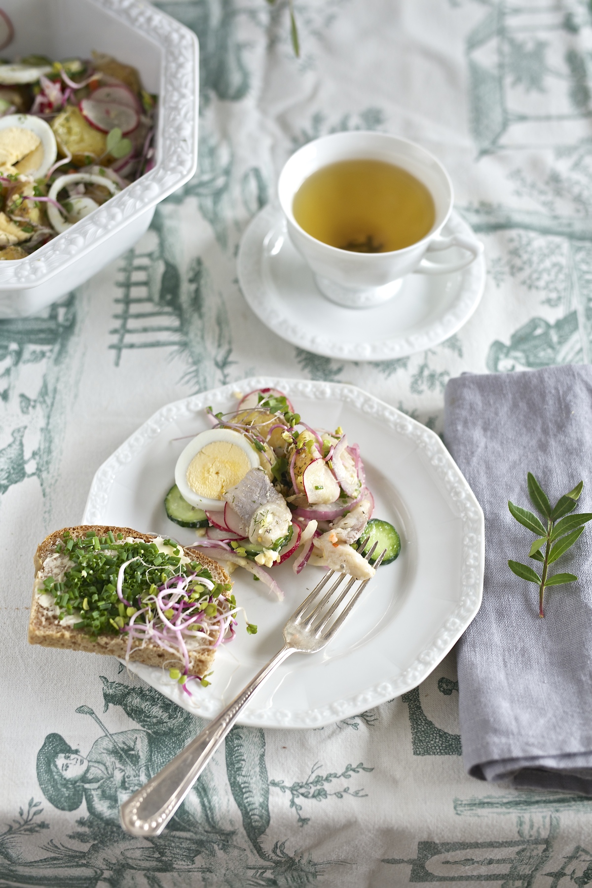 Sałatka z kaszą quinoa i domowym majonezem bazyliowym.