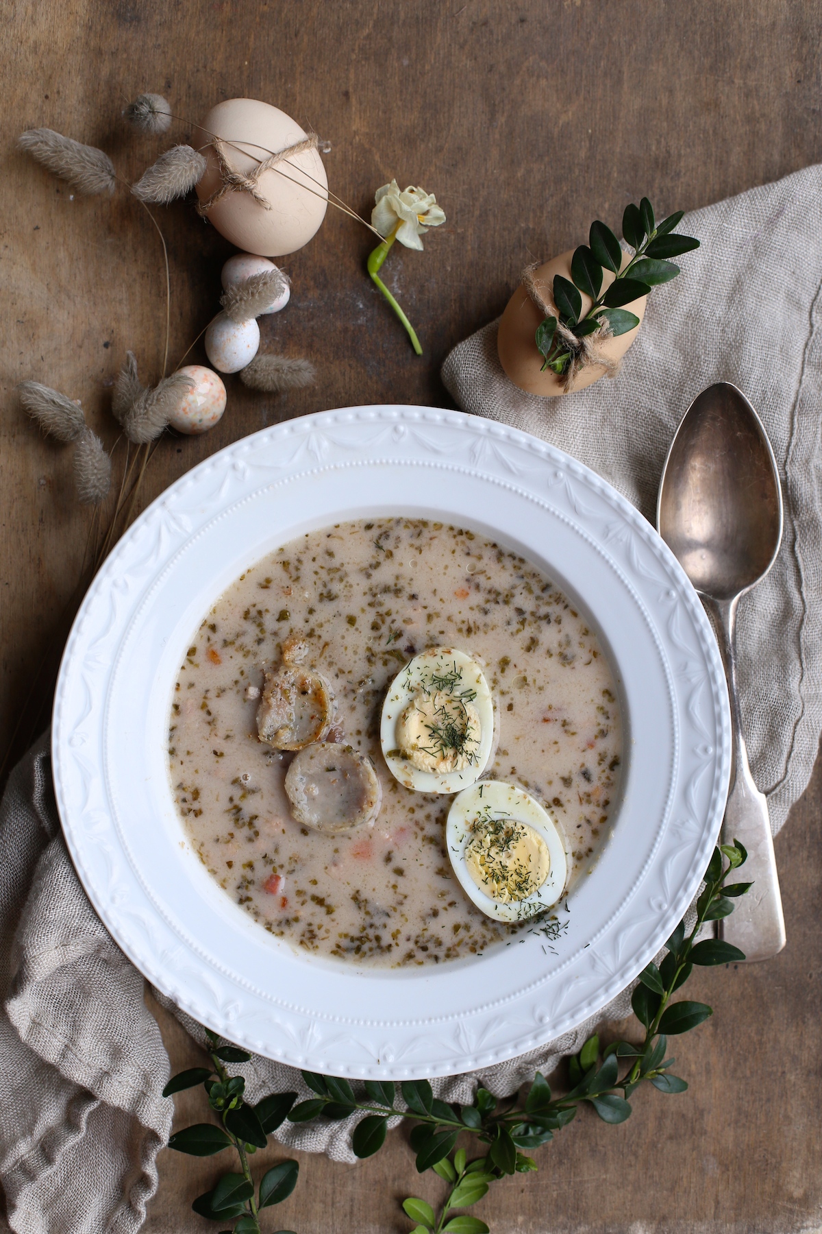 Domowy żurek z białąkiełbasą i suszonymi prawdziwkami