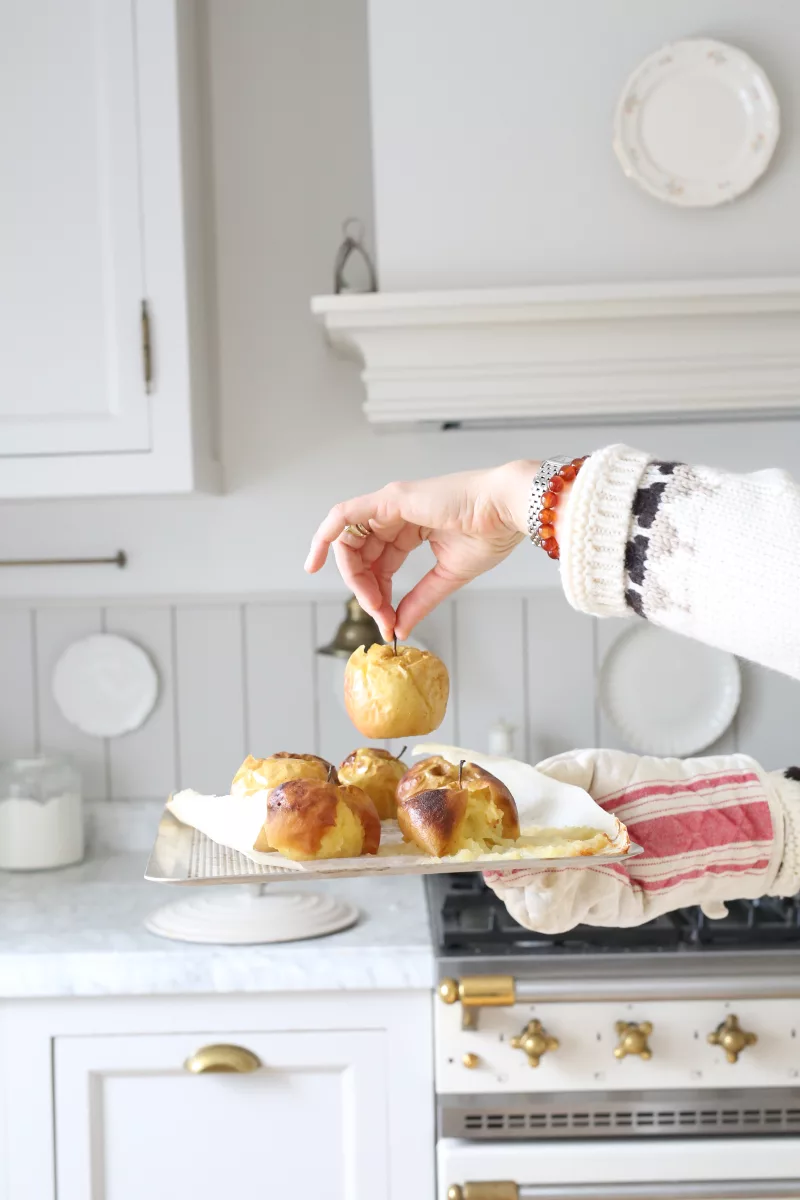 1. Jabłka dokładnie myjemy i w całości układamy w naczyniu żaroodpornym. Pieczemy w 180°C przez 20-25 minut, aż będą miękkie i lekko karmelizowane.
