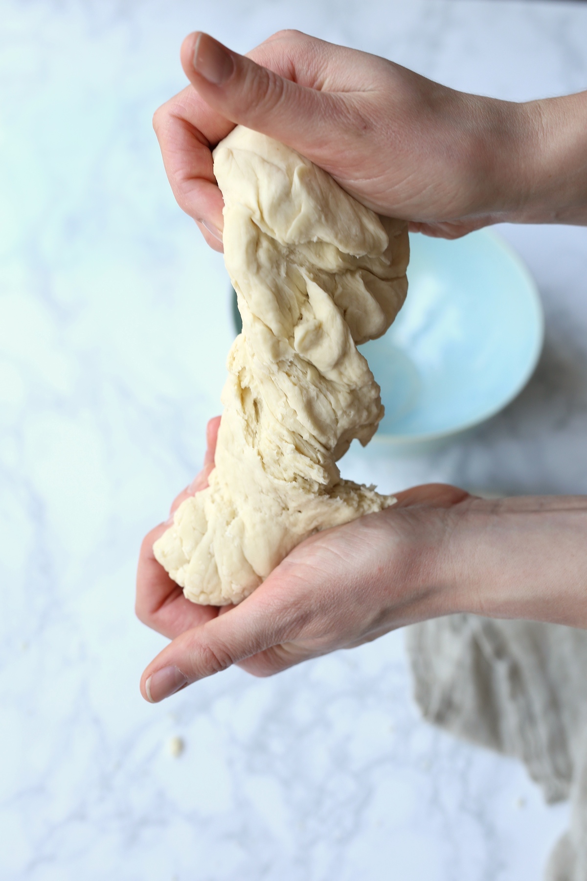 Po wyrośnięciu ciasta formujemy 4 kulki o wielkości mandarynki.