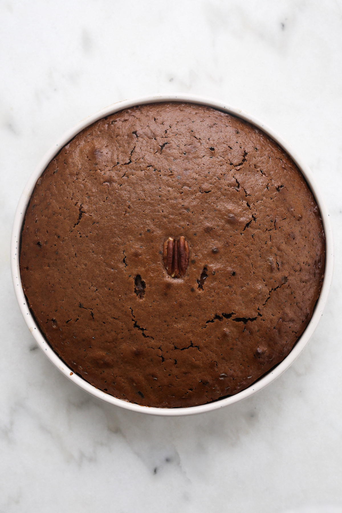 Wegańskie brownie z prażonymi orzechami pekan i musem śliwkowym.