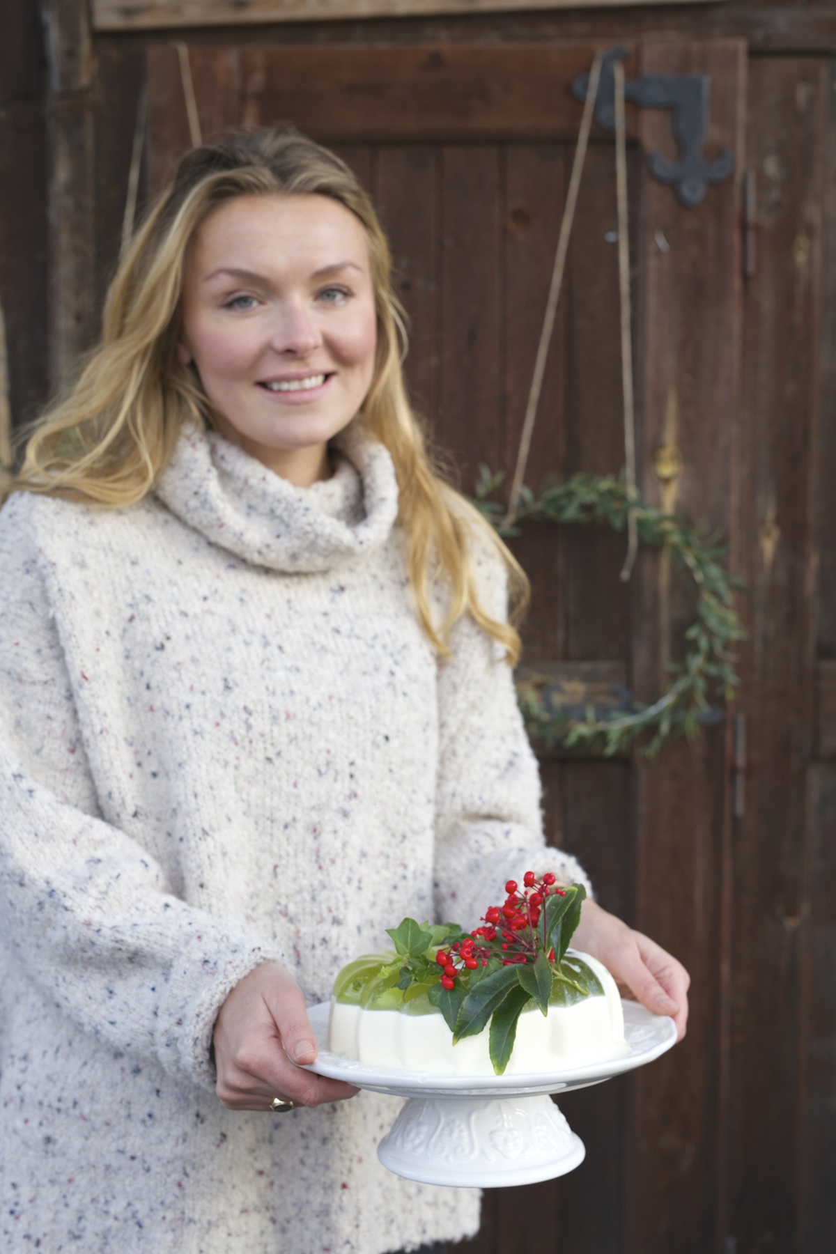 - Jak sprawnie wyjąć panna cottę z formy: do dużego garnka (średnica musi być większa od formy silikonowej) nalewamy wrzątek. Schłodzoną formę silikonową z panna cottą zanurzamy na parę sekund we wrzątku – po chwili masa powinna bez problemu odejść od ścianki formy. Nakrywamy talerzem i zdecydowanym ruchem obracamy formę do góry nogami. Gotowy deser dekorujemy zmrożoną (świeżą) żurawiną i zielonymi gałązkami.