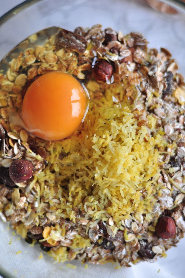 Dodatkowo dorzuciłam też inne niż proponowane przez Ciebie składniki – rodzynki, suszoną żurawinę, migdały (poprzekrawane na pół, płatki migdałowe oraz zmielone migdały – w formie „proszku”), wiórki kokosowe, a także kandyzowaną skórkę pomarańczową i cytrynową oraz mak.