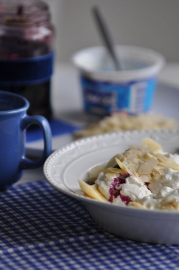 Pycha! Sama często zjadam, ale zastępuję konfitury miodem. To wersja grecka z programu o podróżach ;-) Właśnie cały sekret w tym, że to wcale nie jest przesiąknięte słodyczą, a naprawdę syci, jest zdrowe i dodaje energii. Można wsypać łyżeczkę otrębów, jeśli ktoś lubi :-)