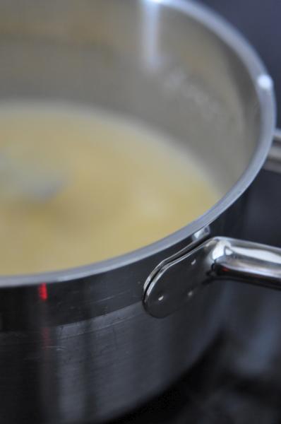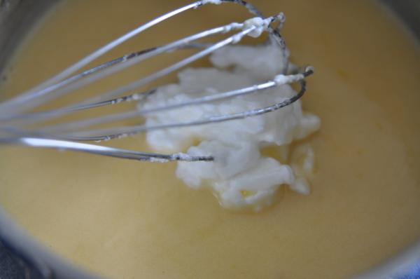 1. Żółtka ucieramy z cukrem pudrem i cukrem wanilinowym, aż do uzyskania białej masy. Dodajemy startą skórkę z 1 cytryny oraz wyciśnięty sok z 3 cytryn. Mieszamy, a następnie stawiamy na małym ogniu i gotujemy ok. 5 minut, stale mieszając.