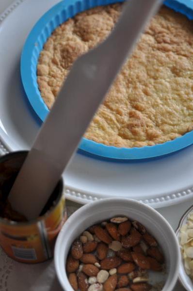 3. Sparzone żółtka ubijamy z cukrem, dodajemy serek naturalny oraz mascarpone i ubijamy na wyjątkowo głądką masę. Na końcu dodajemy startą skórkę cytrynową. Naczynie z masą owijamy w folię i umieszczamy do lodówki na 30 minut. Kruche ciasto wyjmujemy z piekarnika, czekamy aż ostygnie i nakładamy na powierzchnię cienką warstwę masy kajmakowej. Następnie wyjmujemy z lodówki masę z mascarpone i nakładamy nią na warstwę kajmaku. Na końcu posypujemy prażonymi płatkami migdałów!