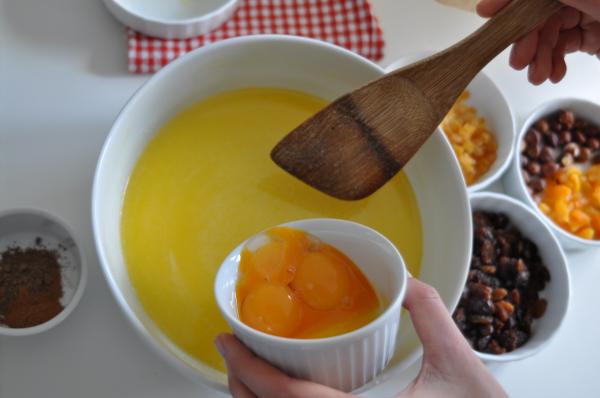 Wszystkie bakalie łączymy z ciastem.