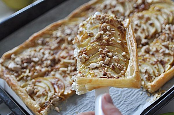 To chyba najoryginalniejsza szarlotka jaką kiedykolwiek widziałam. Przypomina trochę ciastko francuskie z nadzieniem jabłkowym. Nie mogę się doczekać kiedy wypróbuję !
