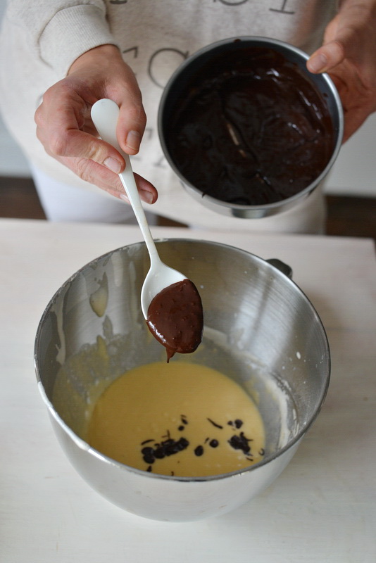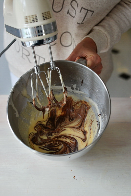 2. Mąkę przesiewamy z solą i proszkiem do pieczenia, a następnie dodajemy ciepłe mleko, masło i utarte jajka z cukrem. Na końcu dodajemy starty cynamon i rozpuszczoną w kąpieli wodnej czekoladę. Mieszamy wszystkie składniki i odkładamy na 20 minut.
