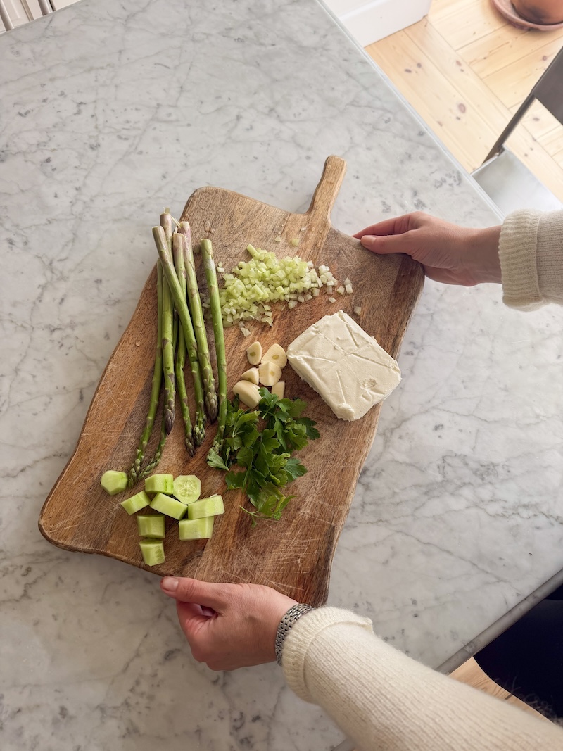 Na koniec możemy dodać na wierzch kawałek szparaga i od razu jemy – póki wszystko jest jeszcze ciepłe i chrupiące. Na zdrowie!