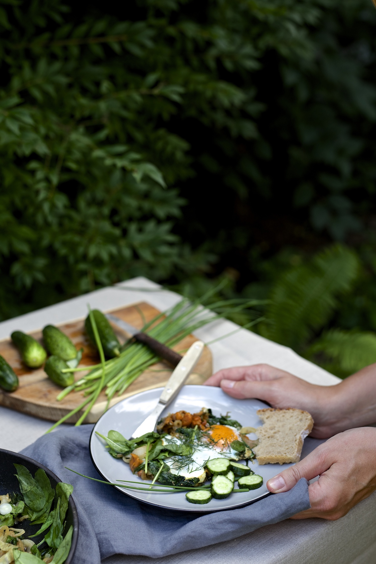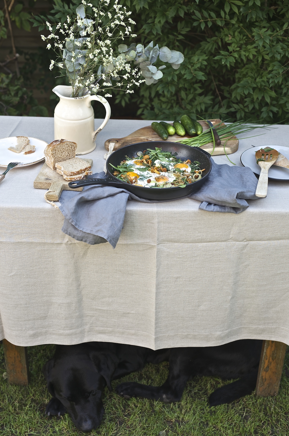 obrus lniany – naturalnerzeczy.pl // żeliwna patelnia – Chasseur