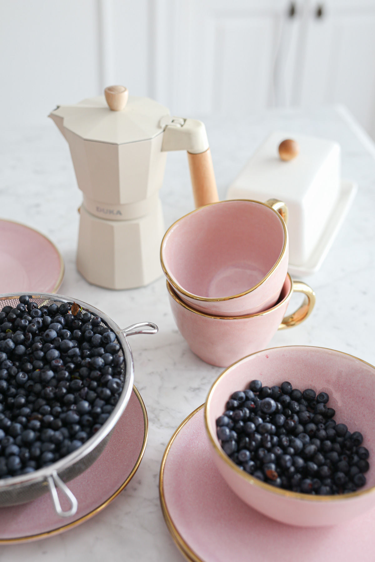 ceramiczne talerze | filiżanki | kawiarka | podkładki z juty –