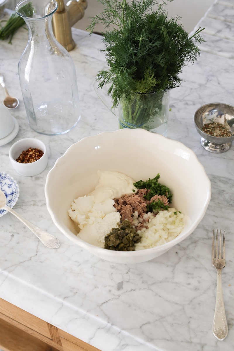 Uwielbiam zaglądać do skandynawskich kuchni. Zawsze coś przyciągnie mój wzrok, ale najbardziej urzekają mnie ich proste kanapki – pełne zieleni, ułożone trochę intuicyjnie, trochę niedbale, ale jednak są pięknie. I właśnie podczas jednego z takich przeglądań wpadło mi w oko to cudo – tylko w mojej wersji mamy maślaną, miękką brioszkę przełożoną pastą z tuńczyka, z kaparami z dużą ilością świeżego koperku, który pachnie absolutnie niebiańsko. To co, myślicie, że wyróżni się na wielkanocnym stole?