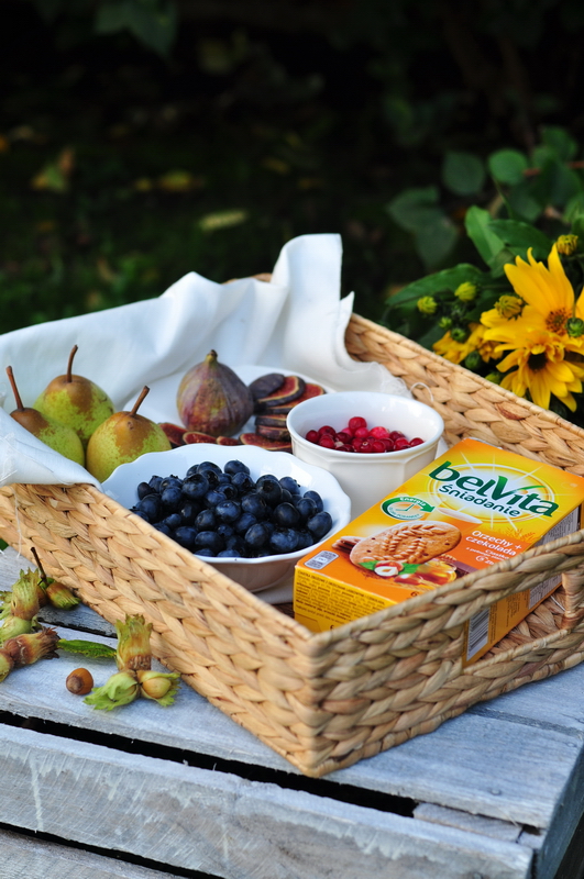 Kocham borówki i miód :) Ale sezon na borówki już się kończy, coraz szybciej niszczeją. Ciasteczka BelVita – uwielbiam :)