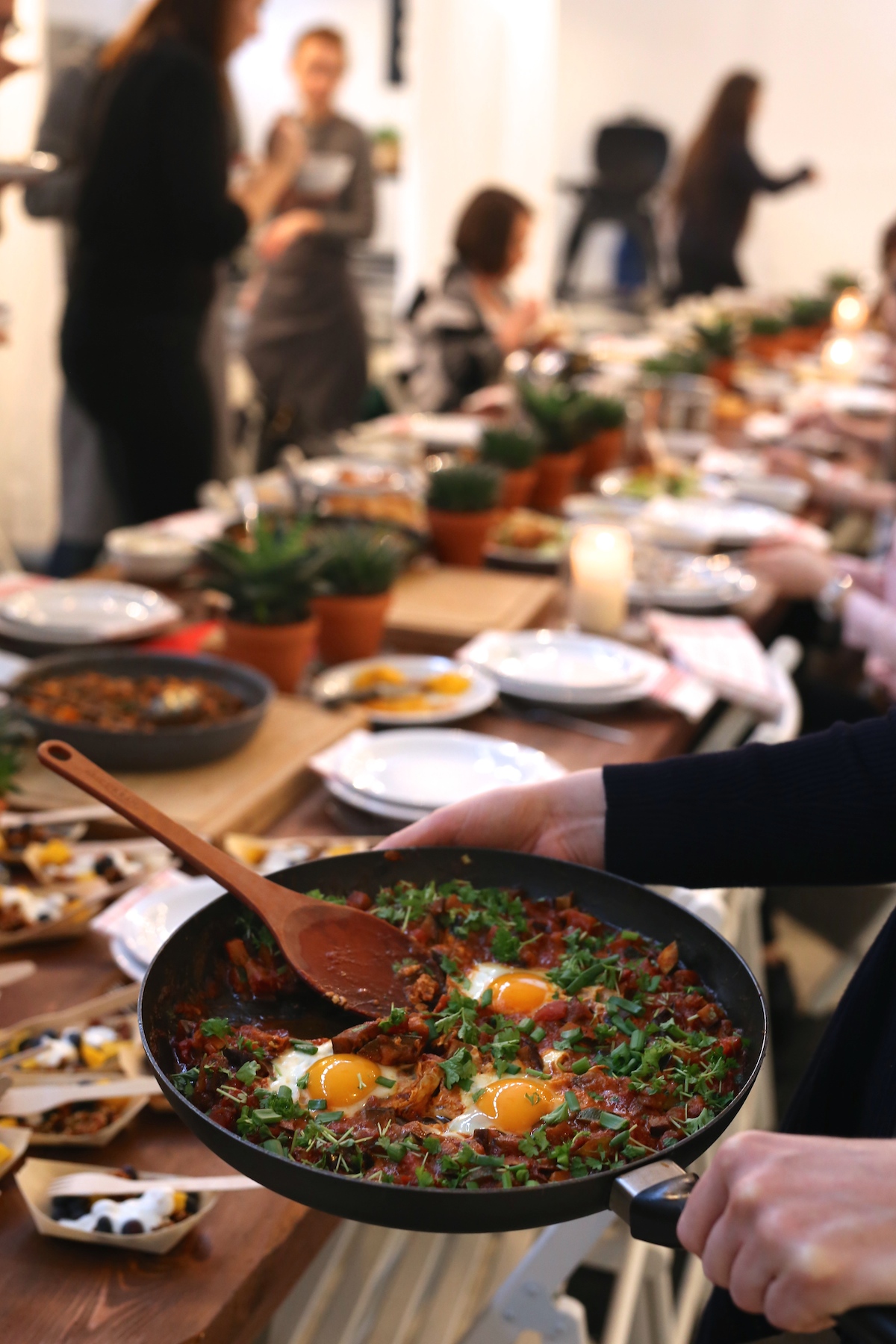 Wśród śniadaniowych propozycji gotowaliśmy również szakszukę* z wędzoną papryką, kminem, pieprzem, papryczkami cayenne, kurkumą i nasionami kminku. Ta wersja szakszuki nieco się różni, od tej którą jadłam w Izraelu – jest bogatsza w ilość dodanych przypraw.